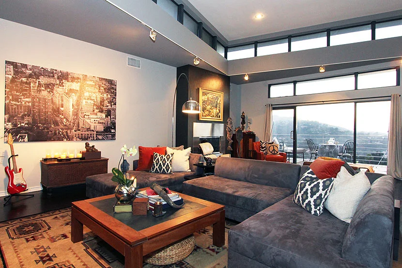 Modern Architectural In the Hollywood Hills w Amazing Views From Everywhere, A Zen Garden Greets You Behind The Gate Leading You To A Wall of Glass Entry To the Huge Open Layout where High Ceilings and Clerestory Windows Amplify The Modern Effect Evoking A Loft-Style Feel That Spills Out To Balconies w Incredible Skyline & Hillside Views, Modern Kitchen is Surrounded by 3/4 Height Walls Tying Into The Lofty Feel and Opens To Amazing Formal Dining Room w Balcony & More Views, Open Staircase Leads You Down To Your Private Level Centered Around Downstairs Den, Bright Over-sized Master Suite Features Fireplace, Balcony, Fabulous Views, Modern Open Bathroom and Walk-In Closet, Downstairs is completed by 2 Lovely Guest Bedrooms, Guest Bathroom, and Laundry Room. 2 Car Garage w Direct Entry, Spa in Zen Garden, Newly Built in 1990, Near Great Hiking At Lake Hollywood, Super Close to Ventura Blvd., Mulholland Bridge and Every Studio!